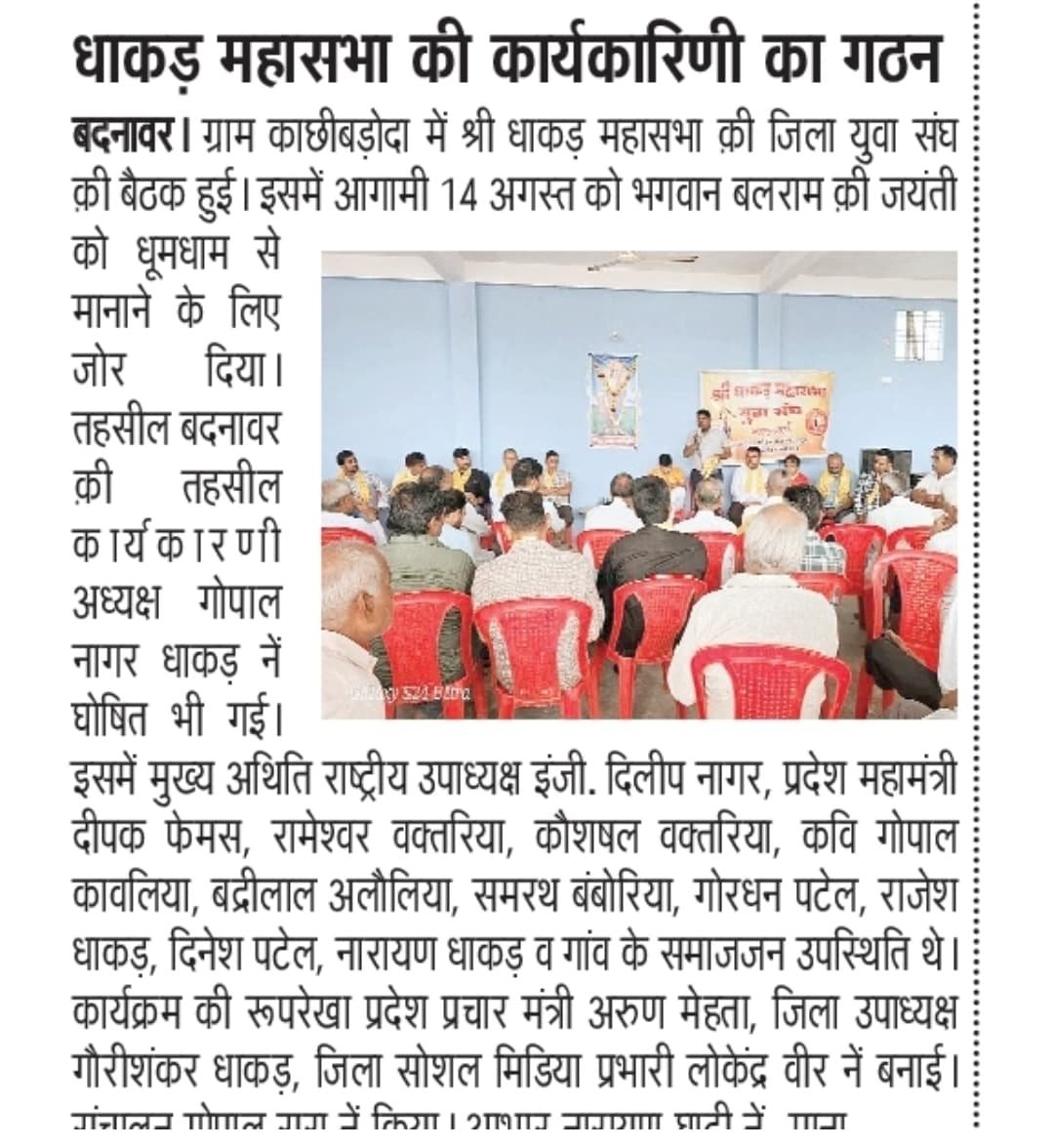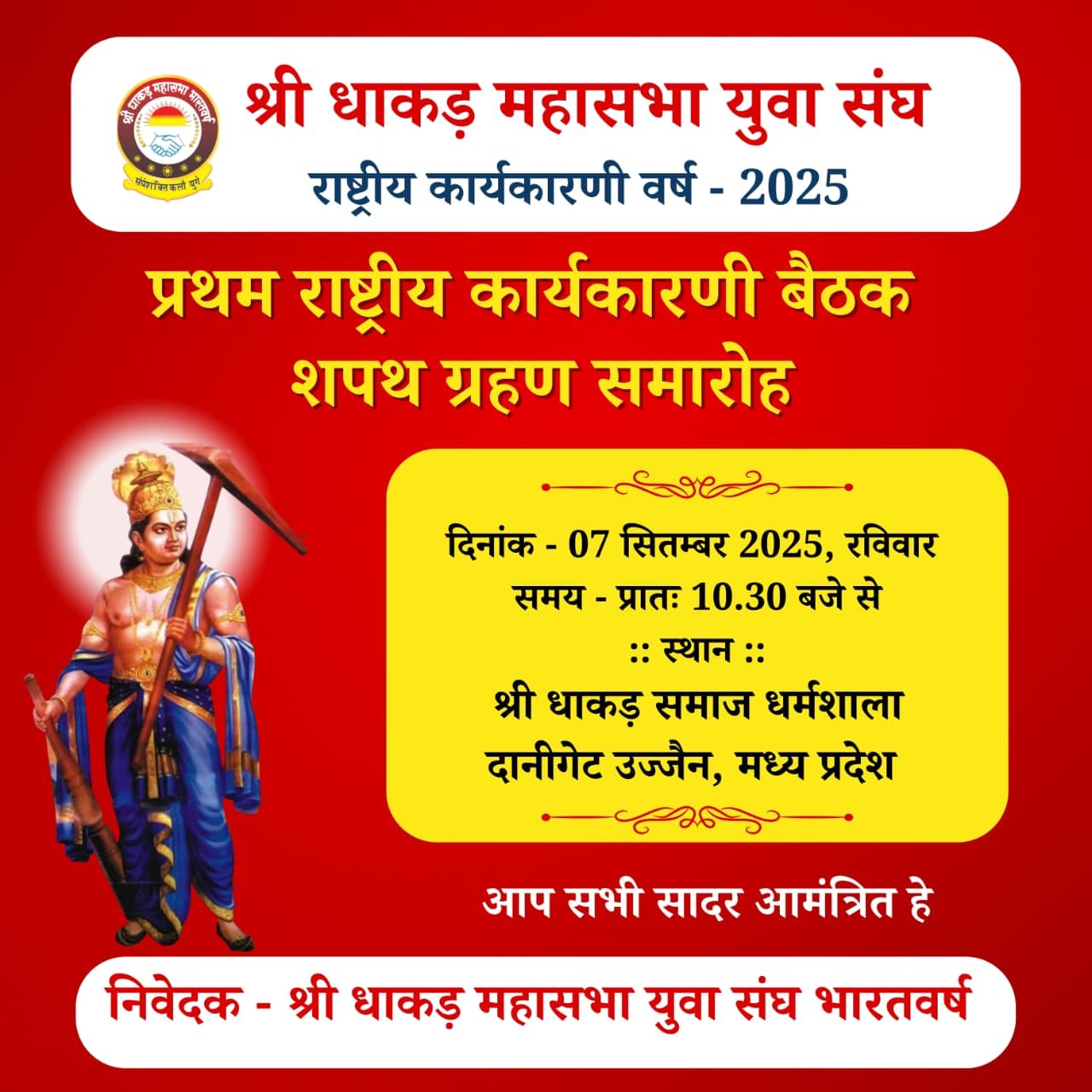 श्री धाकड़ महासभा युवा संघ राष्ट्रीय कार्यसमिति बैठक कार्यक्रम धाकड़ धर्मशाला दानी गेट उज्जैन सुर्खिया