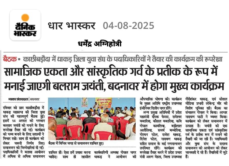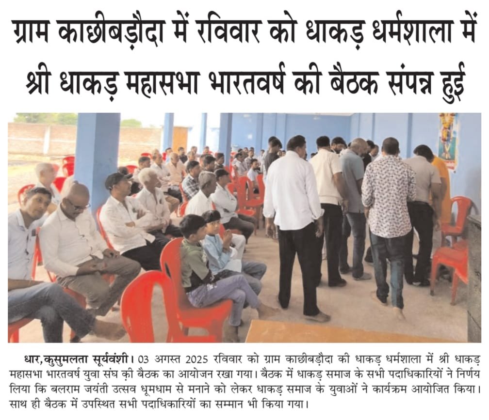 श्री धाकड़ महासभा युवा संघ राष्ट्रीय कार्यसमिति बैठक कार्यक्रम धाकड़ धर्मशाला दानी गेट उज्जैन सुर्खिया
